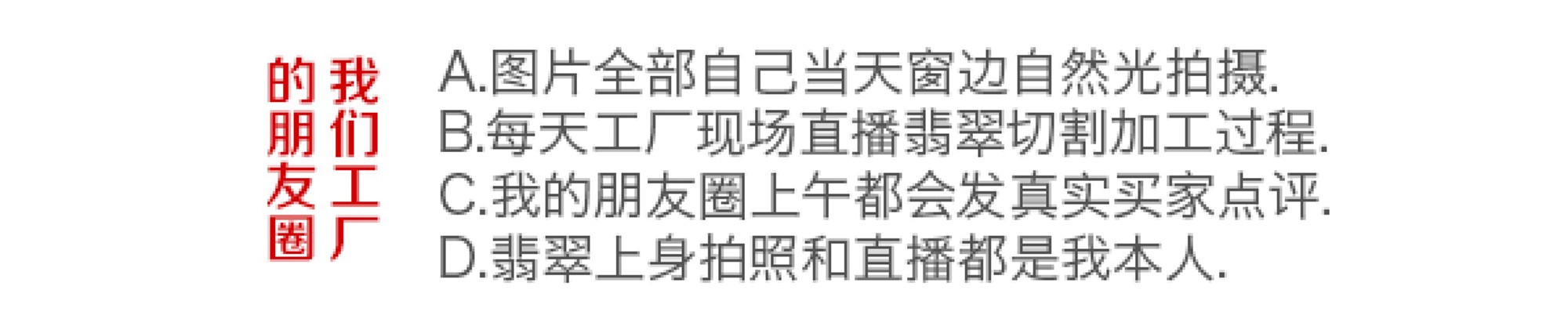 我家的翡翠礦區原石直采,每件必自家工廠加工。杜絕壹切人工處理,不註膠,不染色,更不以次充好。只把最真實最天然的翡翠帶給大家,買我家翡翠的朋友我可以保證做到以下三點: