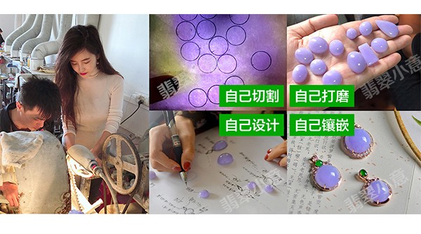 所有產品全部我們自己切割、雕刻、鑲嵌,只有這樣才能把成本壓到極致,不然每壹個環節交給別人都是成本上漲,大家就沒辦法獲得最低價格了。到了下午我就會開始根據原石來畫翡翠鑲金的款式,讓翡翠不僅珍貴也能優雅起來。