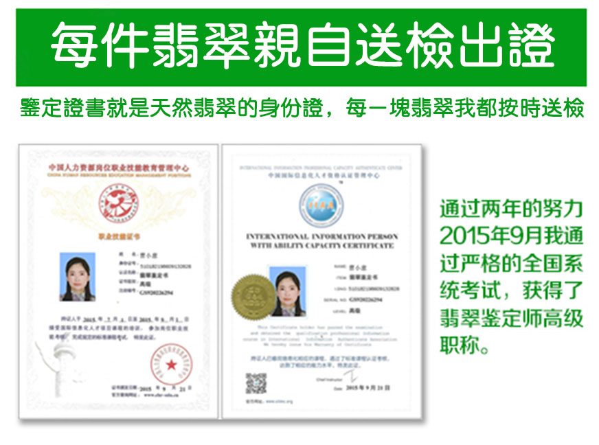 妳好,我是翡翠鑒定師 ,祖輩壹直在緬甸經營翡翠工廠,以翡翠原石開采、雕刻制作為生。到我這壹代已經經過30多年。工廠隸屬於中緬原礦協會單位,目前我正在申請翡翠雕刻的工藝傳承人。